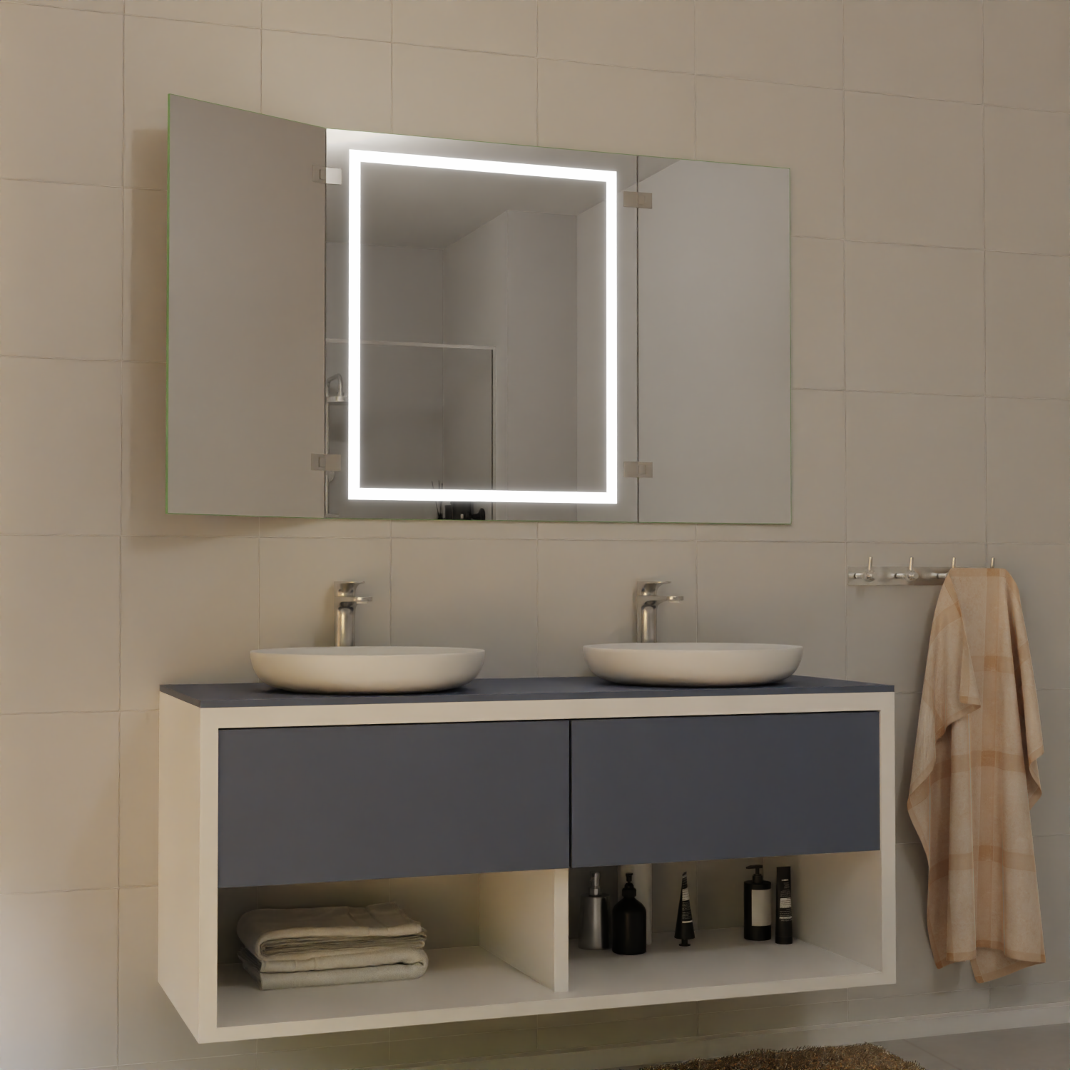 Abbildungen können vom tatsächlichen Produkt leicht abweichen. Dekoration und gezeigte Badmöbel gehören nicht zum Lieferumfang. Farbabweichungen sind je nach Bildschirmdarstellung möglich. Maßangaben unterliegen einer Fertigungstoleranz von ±2–3 mm. Änderungen in Design und Technik bleiben vorbehalten.