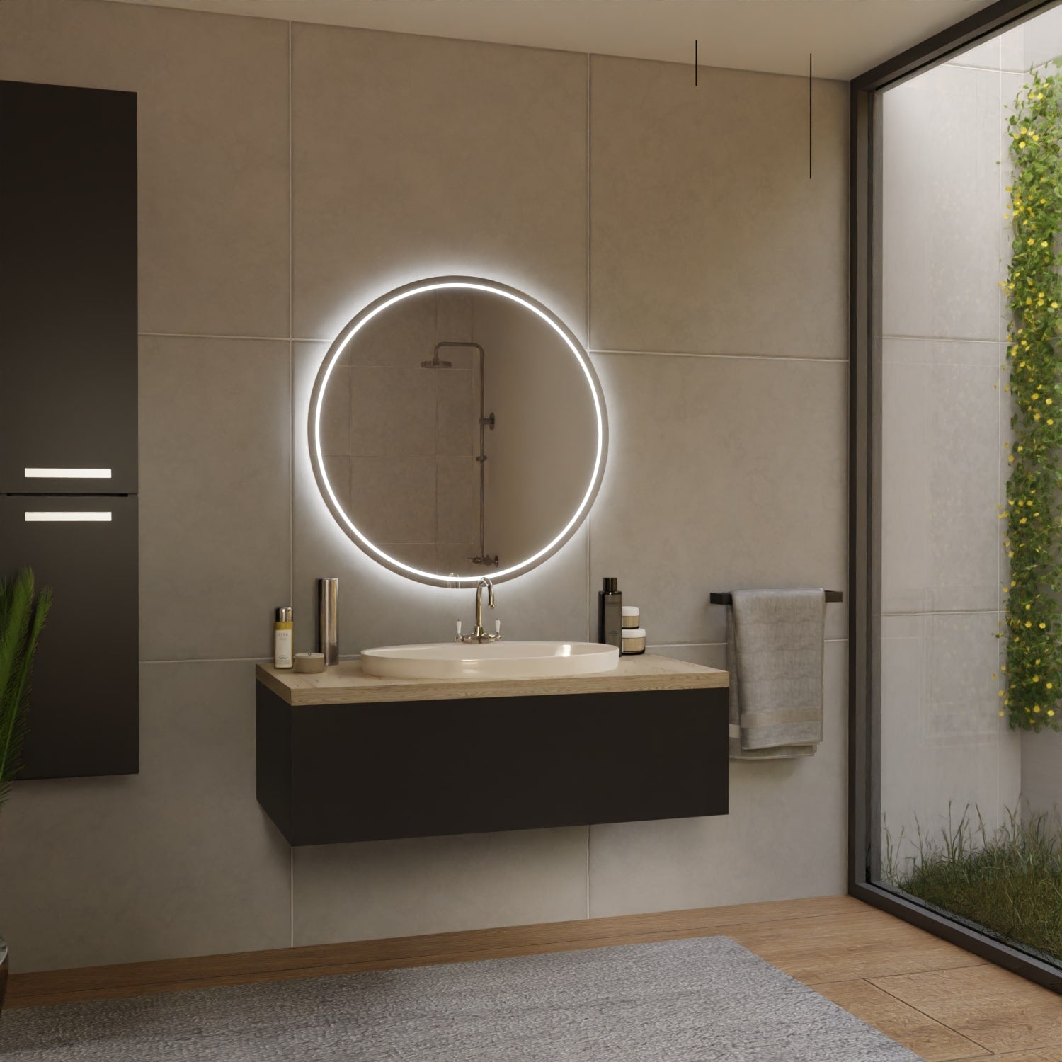 Abbildungen können vom tatsächlichen Produkt leicht abweichen. Dekoration und gezeigte Badmöbel gehören nicht zum Lieferumfang. Farbabweichungen sind je nach Bildschirmdarstellung möglich. Maßangaben unterliegen einer Fertigungstoleranz von ±2–3 mm. Änderungen in Design und Technik bleiben vorbehalten.